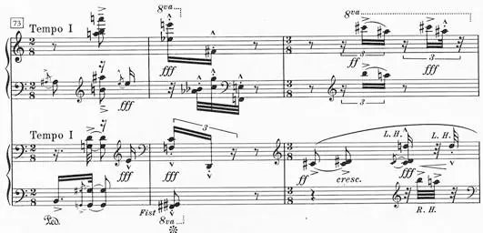 The title refers to an equestrian maneuver, while francophonically exposing the unusually tight, vicious character of the music. A bit of S/M for the parlor-music norm of 4-hand piano repertoire.
