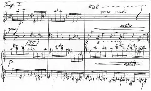 “ Two reasons, among others, worked towards making this piece a ‘major’ effort; 1 – I had not written a multiple movement work in several years and 2 – I had always considered my Trio no. 1 (1957) as perhaps the best piece of my early output and I certainly didn’t want to write a new one that I would view less favorably. In any event, I felt some pressure on me and began by writing perhaps the most important (most serious? most heartfelt?) movement – a lengthy, sustained, and somewhat other-worldly, very slow second movement. That over, the second movement got surrounded by a quite amiable textural allegro first movement and a considerably more torrid and impetuous third movement with the perhaps not-in-the-best-taste, but nonetheless descriptive title ‘Toccata Frustrata.’ ”